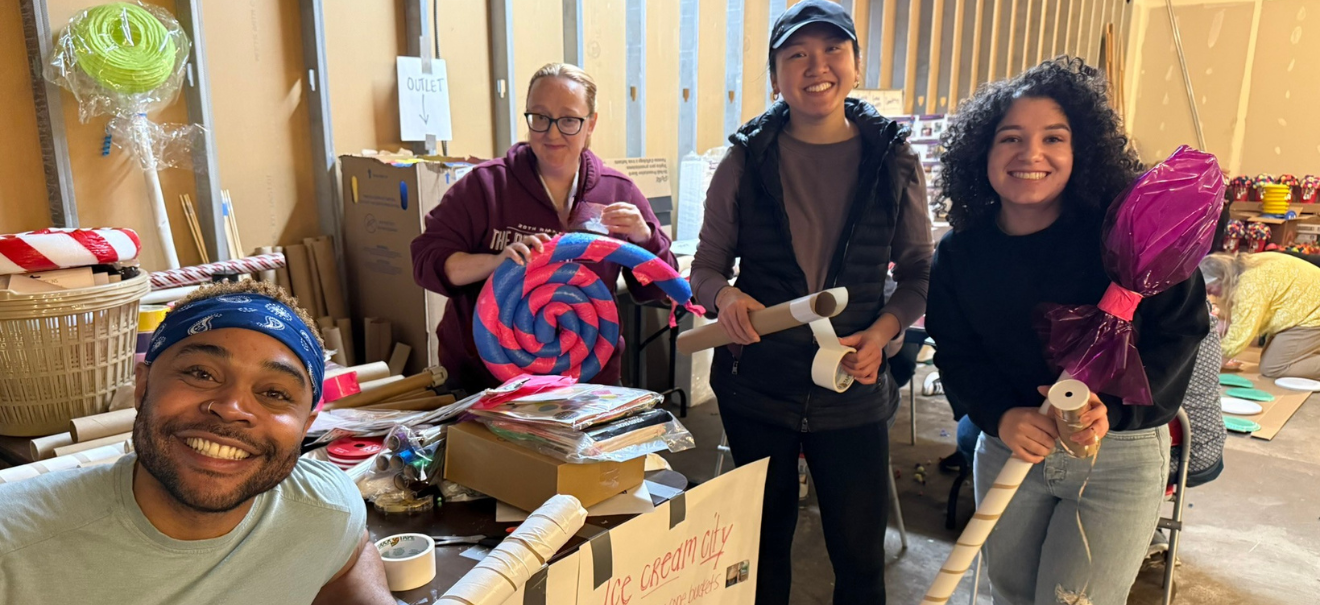 At Shop Nights, volunteers create and build the decor for Jump Back Ball. Projects range from easy to difficult and may include designing and assembling, painting, woodworking, and construction. All skill levels are welcome!