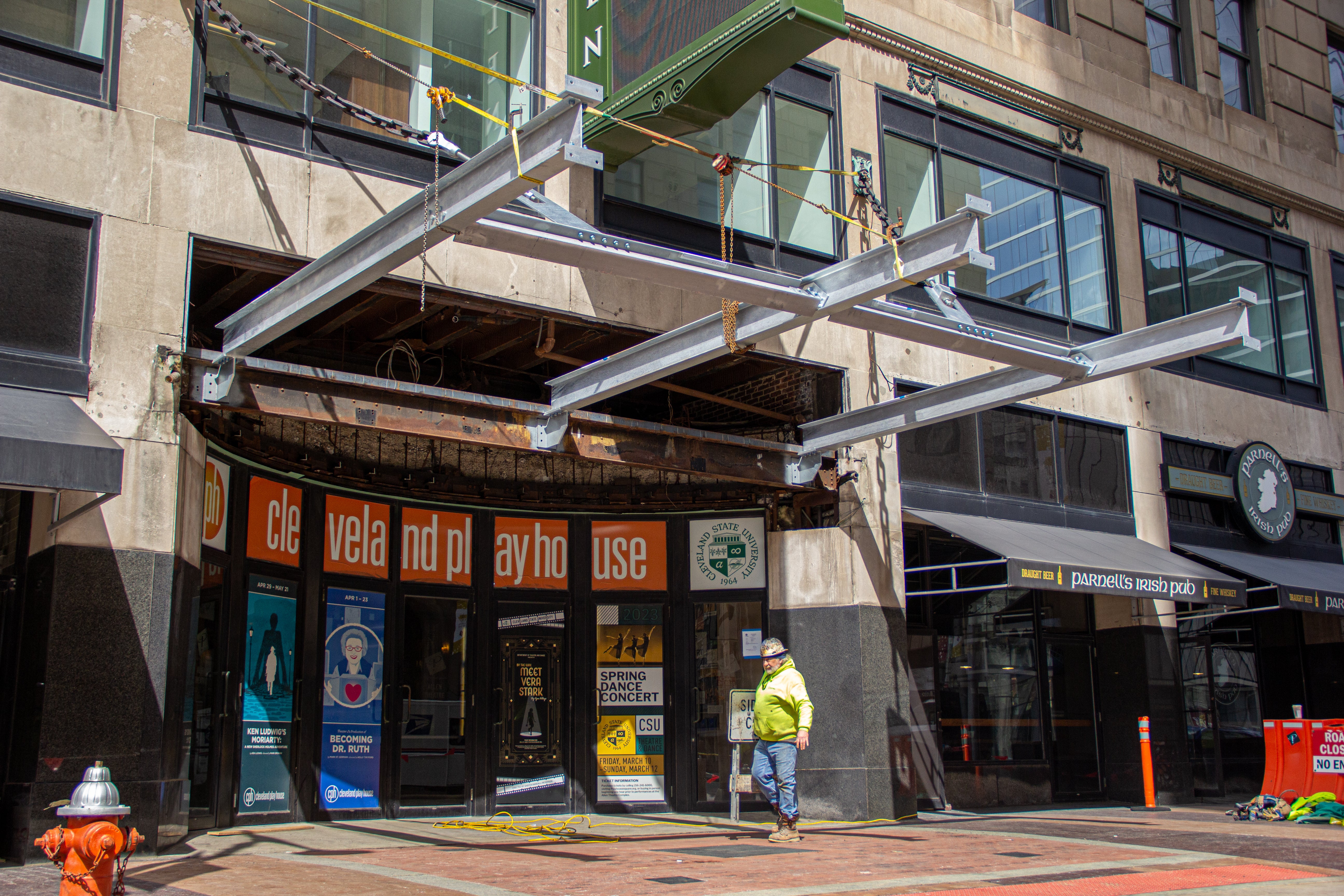 APRIL 28: The Connor Palace marquee front begins to take shape.